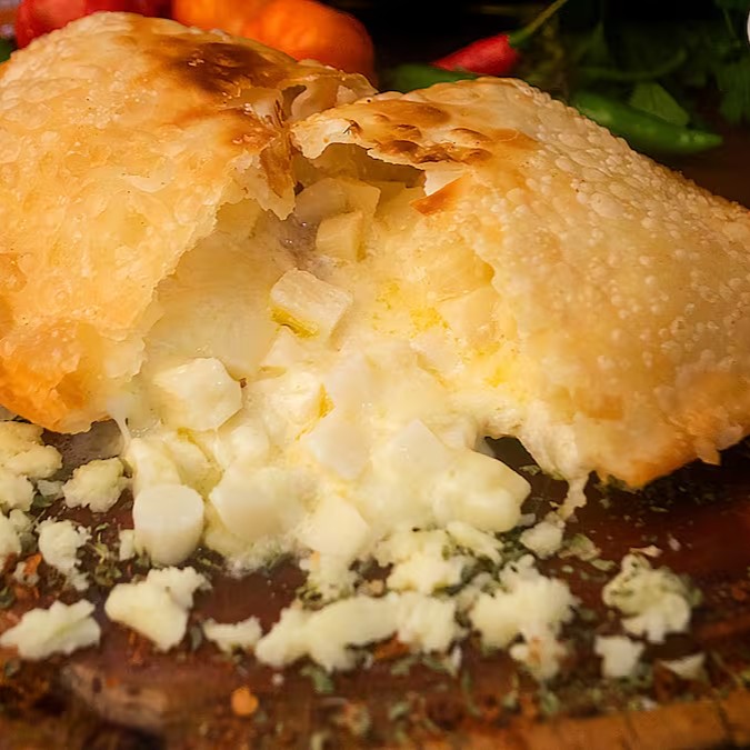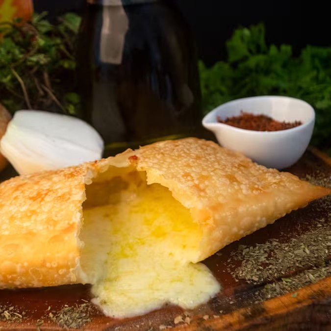 Pastel de queijo coalho derretido.