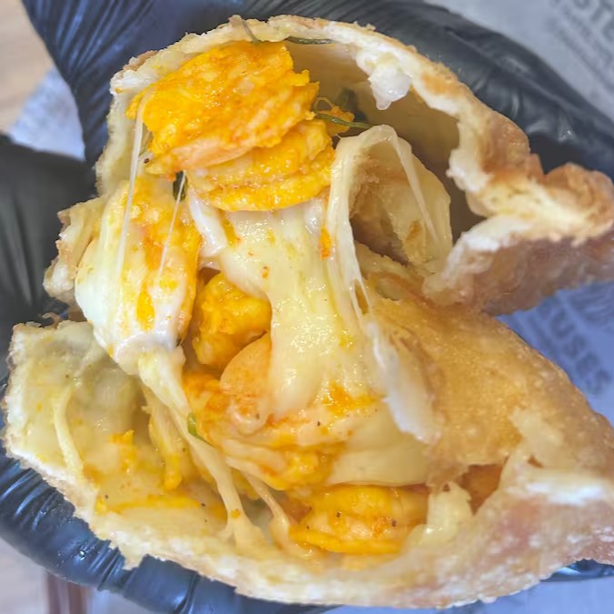 17cm de pastel de Camarão e Queijo: Uma explosão de sabores! Camarões suculentos, queijo derretido e massa crocante.