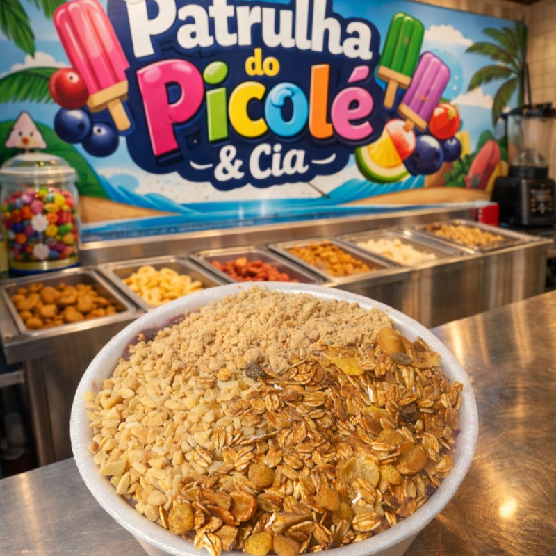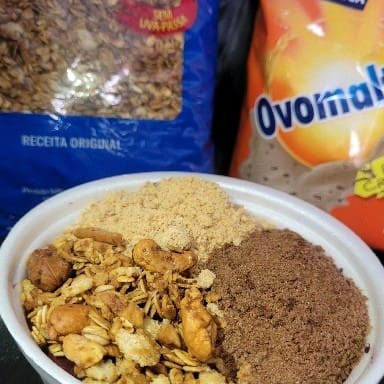 Acompanha granola, amendoim e paçoca.