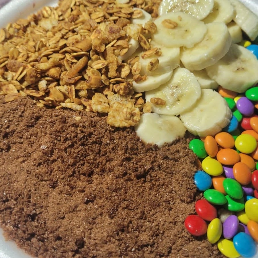 Incluso granola e paçoca. Adicione os itens de sua preferencia.