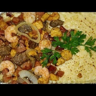 Pirão+Carne do sol+camarão+ frango+calabresa. Obs: salada vinagrete opcional.