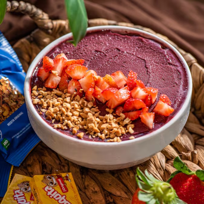 700ml de puro sabor! Delicioso e cremoso açaí em conjunto com um saboroso creme de morango! E ganhe dois adicionais grátis