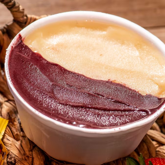 300ml de puro sabor! Delicioso e cremoso açaí em conjunto com um saboroso creme de cupuaçu! E ganhe um adicional grátis