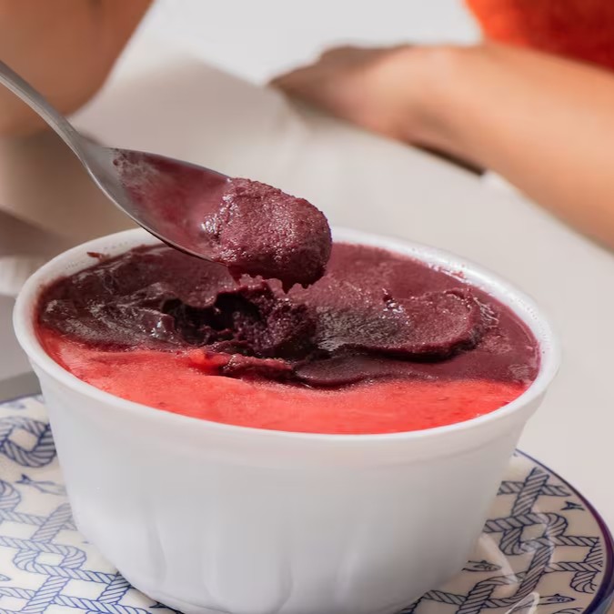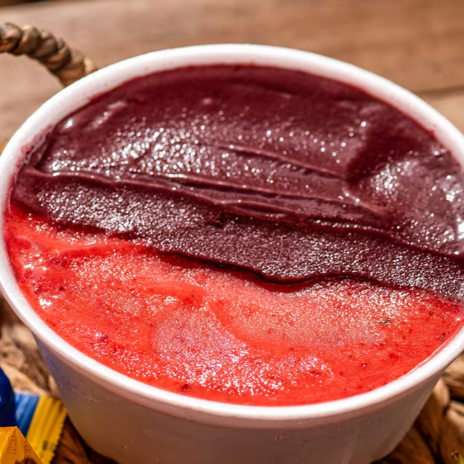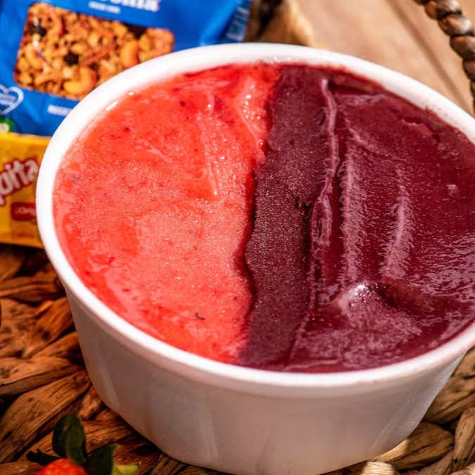 1 litro de puro sabor! Delicioso e cremoso açaí em conjunto com um saboroso creme de morango! E ganhe um adicional grátis
