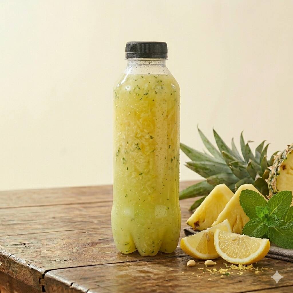 Delicioso e refrescante suco de abacaxi com um toque de hortelã para aumentar a imunidade.