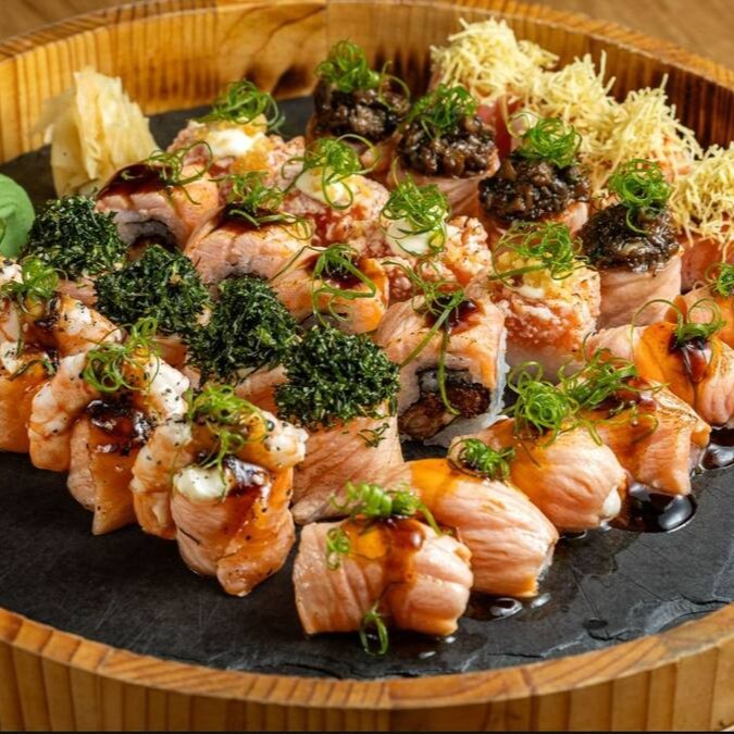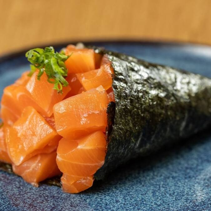 Um irresistível temaki montado com arroz japonês selecionado, recheado com Salmão cru, camarão cozido e cream cheese cremoso. Envolto na lâminas de salmão maçaricado,molho especial do Chef, finalizado com cebolinha fresca para realçar os sabores orientais. Uma explosão de texturas e sabores!