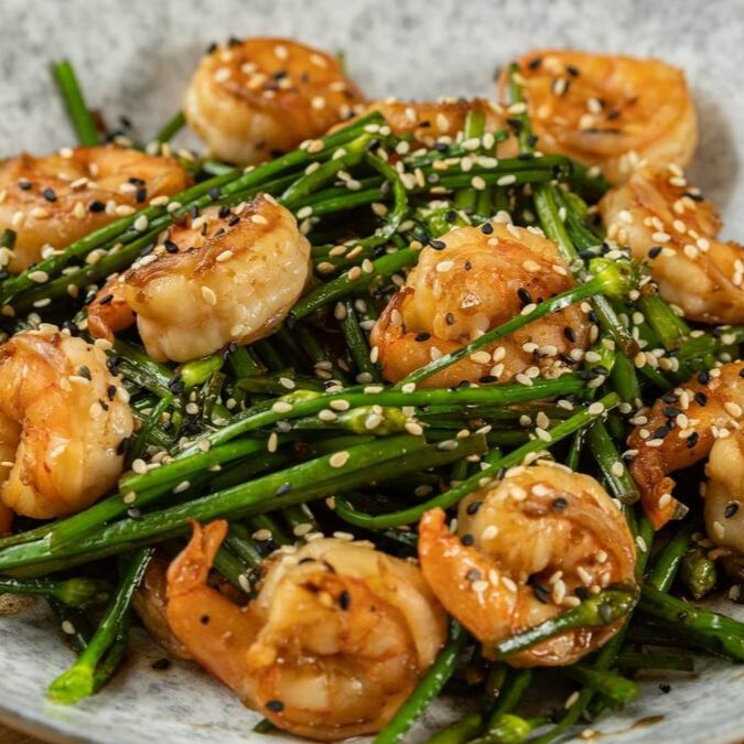 Salteado de camarões suculentos combinado ao nirá, trazendo um sabor marcante, levemente adocicado e aromático. Um clássico da culinária oriental que une frescor, textura e intensidade em cada garfada.