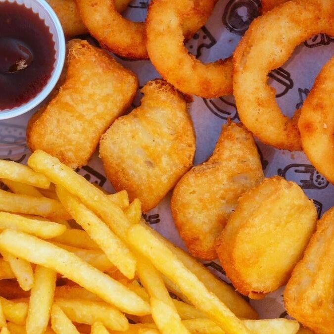 Combo dos Amigos: onion rings, nuggets, batata e aquele molhinho que faz toda a diferença!
