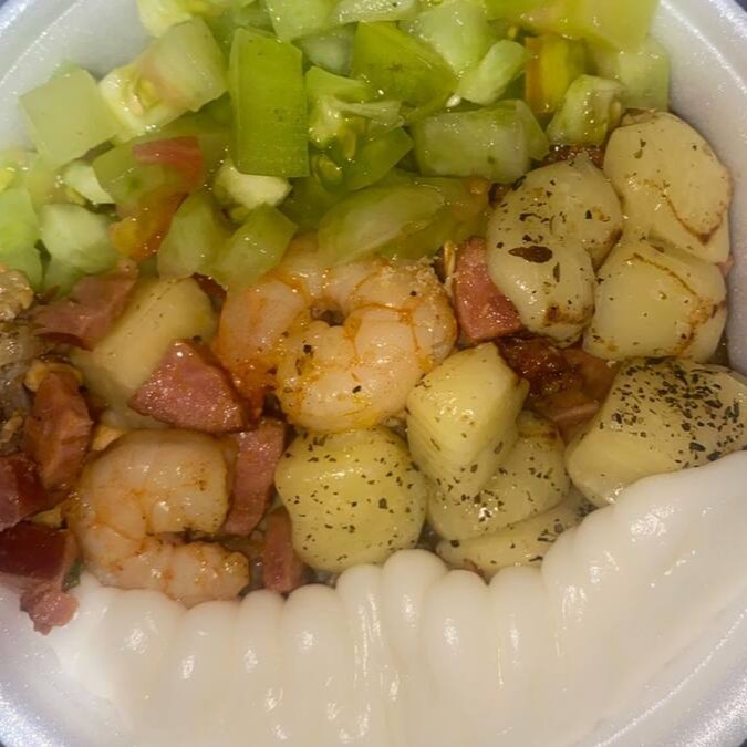 Pirão De Aipim Mistão Do Reino Com Misto, Camarão E Queijo Gratinado - M