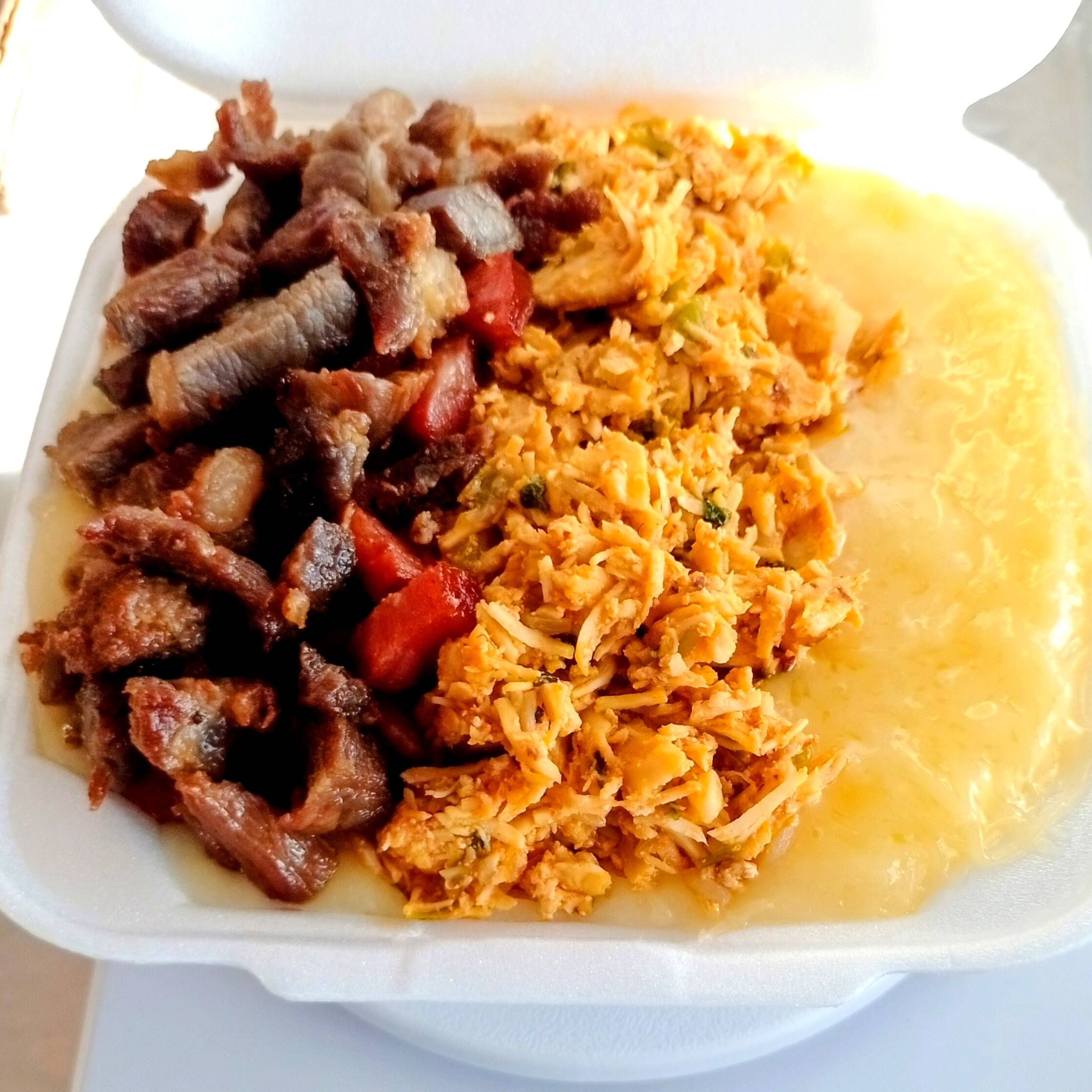 PIRÃO DE AIPIM, CARNE DO SOL, BANANA, FRANGO, CHEDDAR E CATUPIRY.