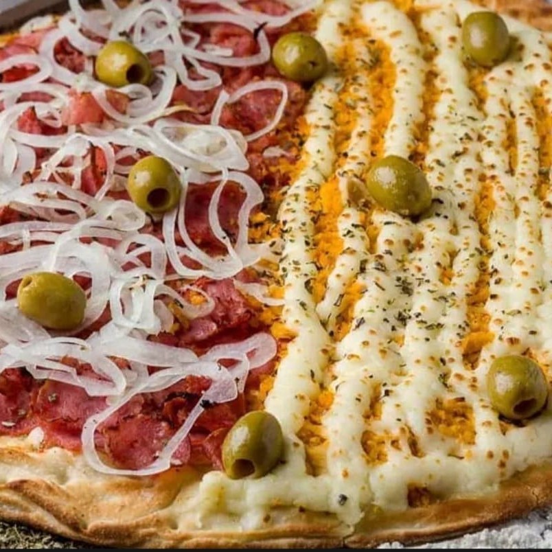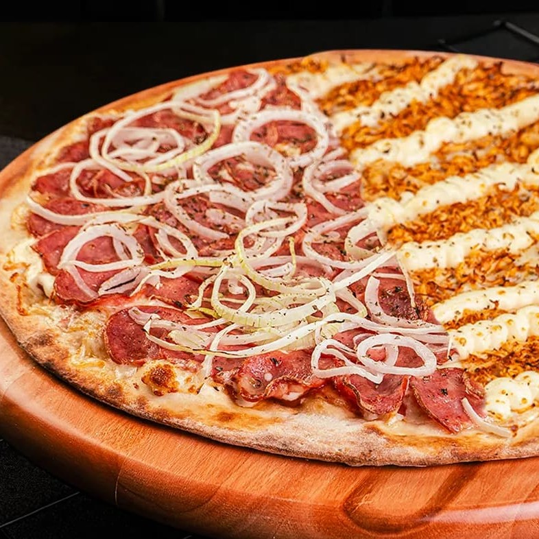 Massa tradicional, molho artesanal de tomate, mussarela e recheio a sua escolha com ingredientes selecionados