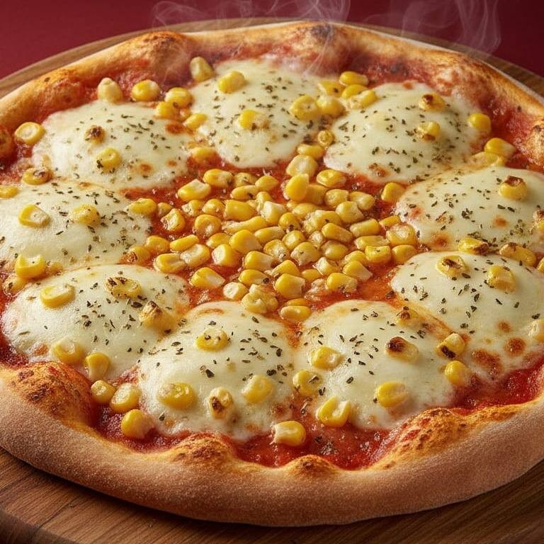 Molho, Mussarela, Milho e Orégano.