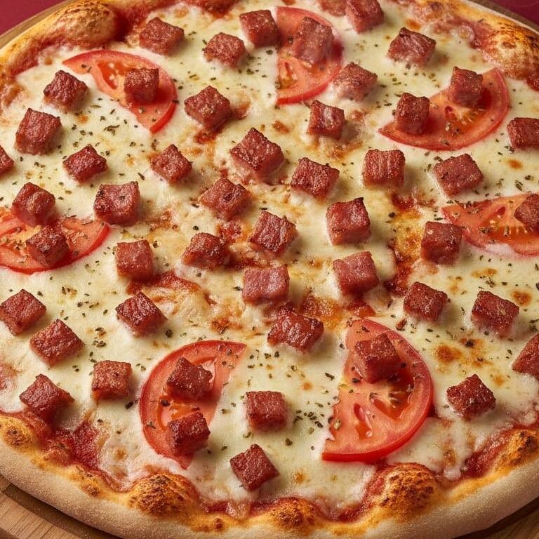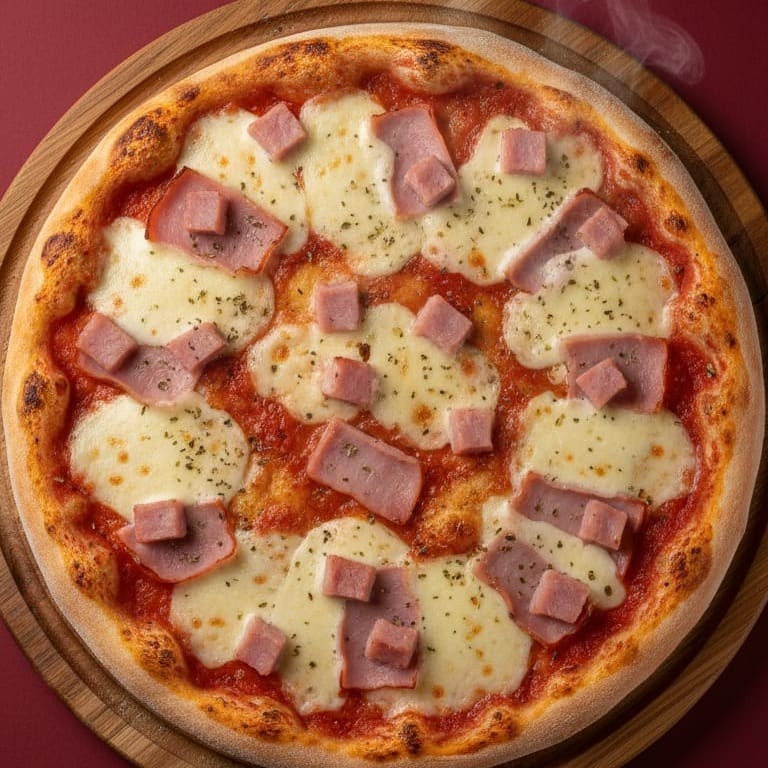 Molho, Mussarela, Presunto, Tomate e Orégano.