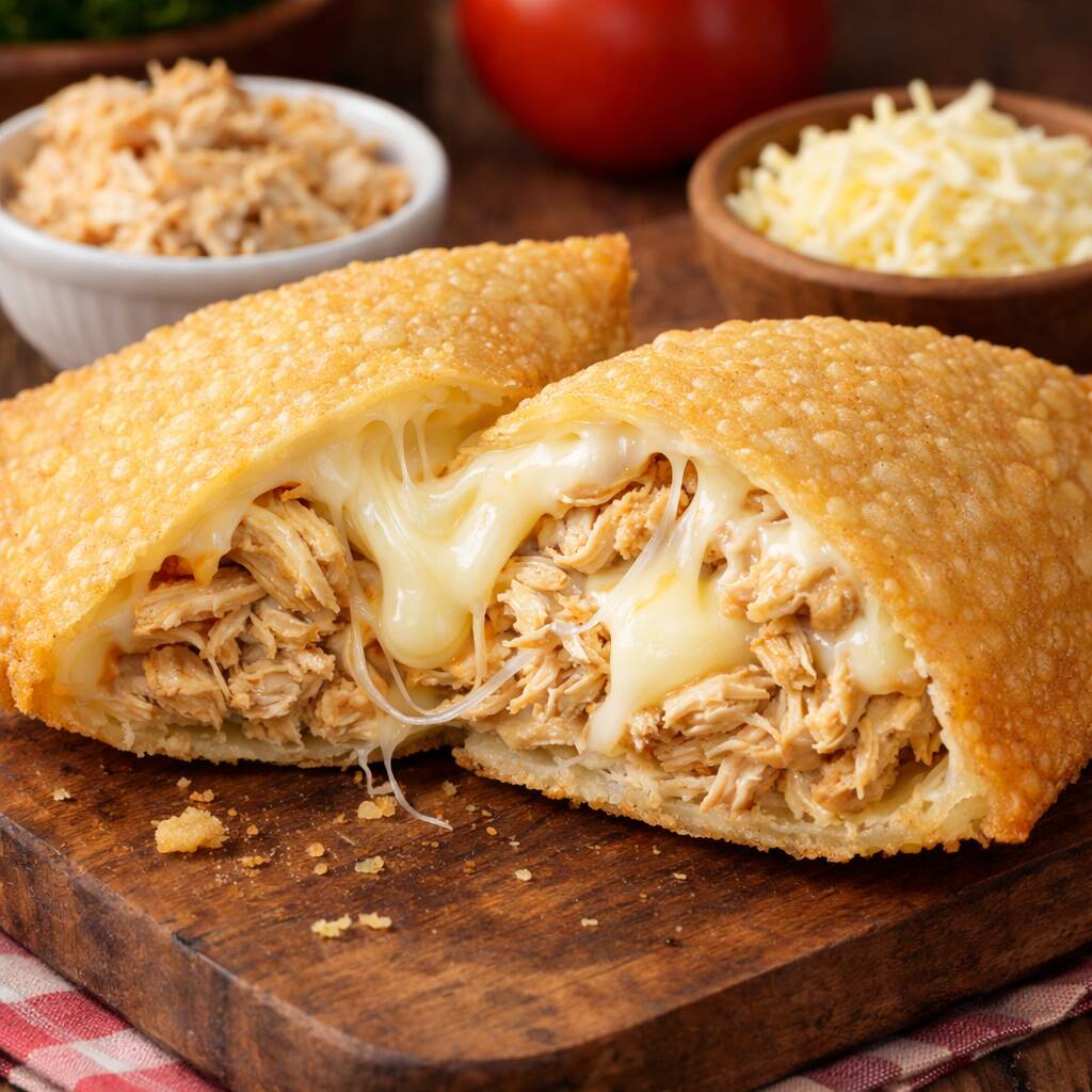 Frango, catupiry, e queijo mussarela.