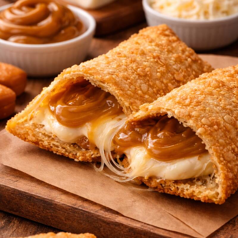 DOCE DE LEITE, RASPAS DE CHOCOLATE E MUSSARELA.