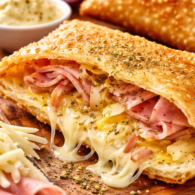 Queijo mussarela, presunto, cebola e orégano.