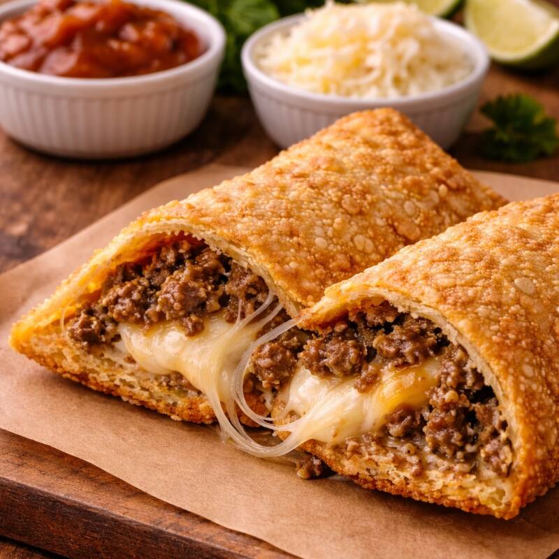 Carne bovina e queijo mussarela.