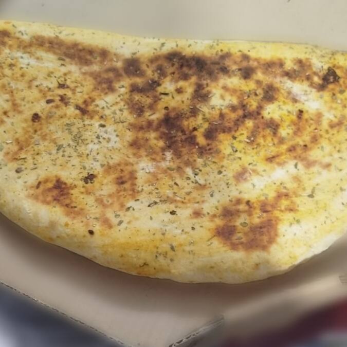 pastel recheado com queijo mussarela, calabresa e cheddar.