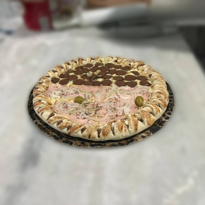 pastel recheado com queijo mussarela, calabresa e catupiry.