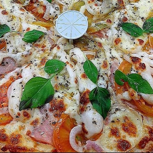 Pizza Grande,8 Fatias,1 Sabor,Molho de Tomate Caseiro,Mussarela,Fatias de tomate com manjericao