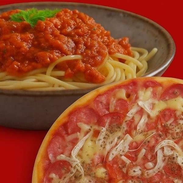 1 Pizza Média (6 fatias) + 500g de Espaguete ao Molho Bolonhesa