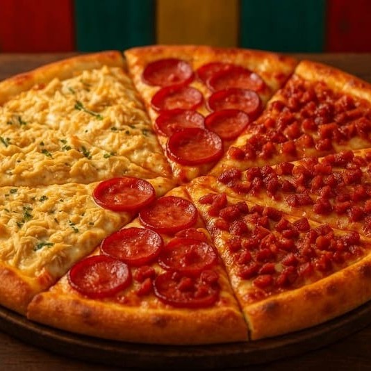 Fantástica Pizza Grande – 8 Fatias, 3 Sabores Irresistíveis!