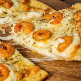 Deliciosa Pizza Feita Uma Massa Leve e Saborosa com Molho Artesanal, Queijo Mussarela, Camarão Fresco ao Molho, Finalizado com orégano.