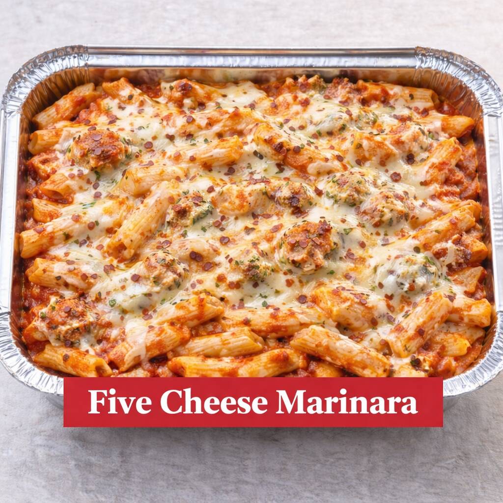 Penne envolvido em blend cremoso de queijos, coberto com muçarela e gratinado até borbulhar.