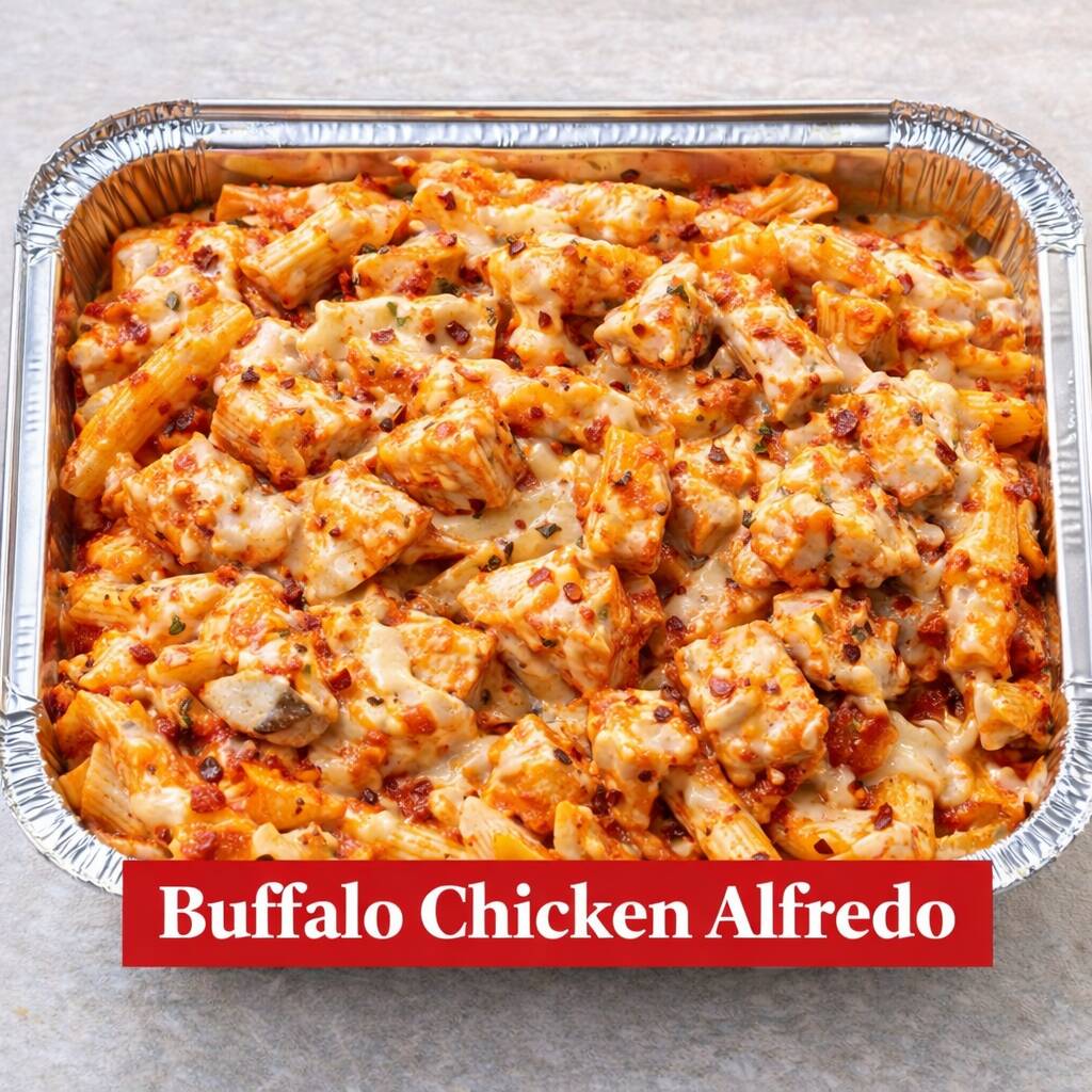 Penne ao molho Alfredo levemente apimentado com toque Buffalo, cubos de frango e queijo gratinado.