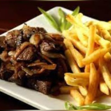 Cubos suculentos de carne de sol dourados na medida, servidos com batata frita crocante.