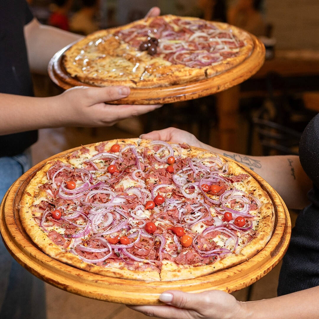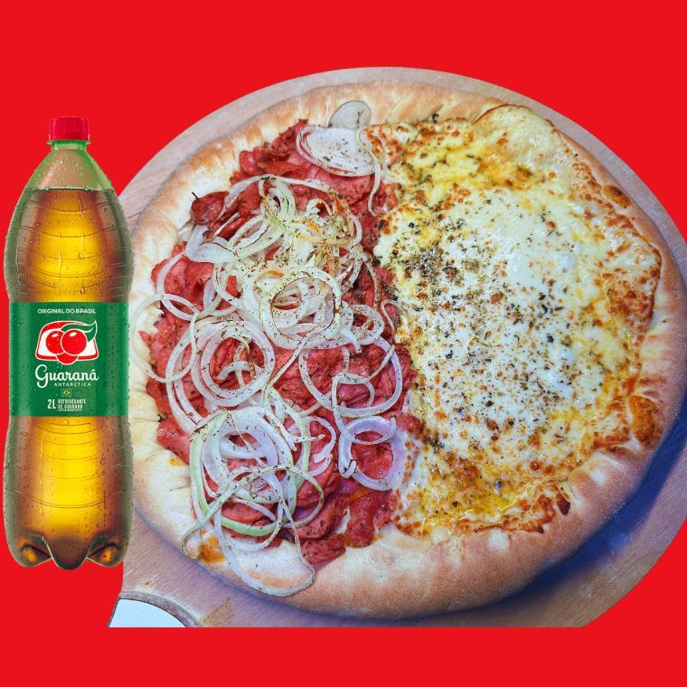 Pizza Grande Calabresa com Cebola – A campeã de vendas! 8 fatias com calabresa suculenta, cebola na medida e aquele sabor que conquista no primeiro pedaço. Crocante, saborosa e queridinha da galera. Se é sucesso, tem motivo!