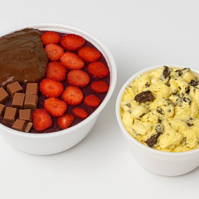400 Ml de Açaí + 100 Ml de acompanhamentos ( Morango + Nutella + Kitkat ) + 200 Ml de sorvete grátis + entrega rápida + entrega grátis