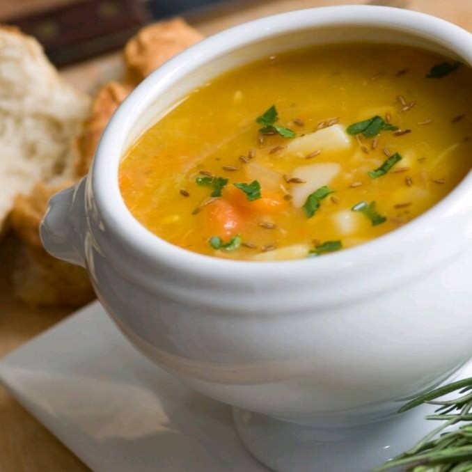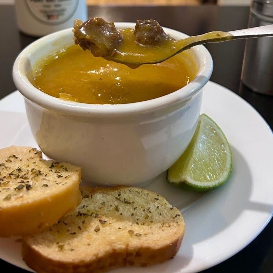 A mais nova sensação do momento!!!!! A Sopa a A moda da casa, feita com carne bovina moída bem temperadinha, legumes fresquinhos e selecionados cortados em cubinhos e um toque mágico das especiarias da casa. Legumes ( Cenoura,batatinha, abóbora e couve ). De brinde, leve torradinhas quentinhas e crocantes grátis.