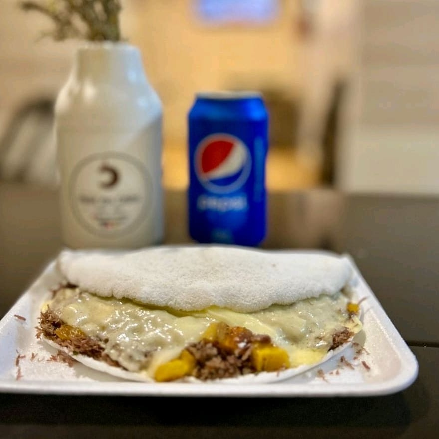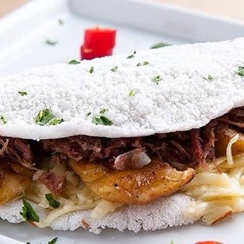 Conhecido também como beijú recheado, feito na chapa com recheio bem generoso. Diversas opções de sabores.