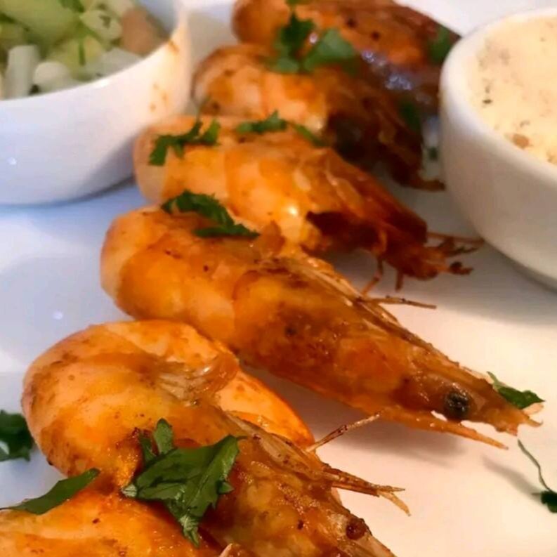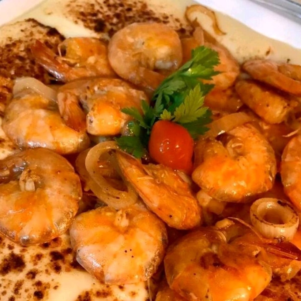 Aproximadamente 300g de camarão marinado ao alho e especiarias da casa + 1 acompanhamento de sua preferência.
