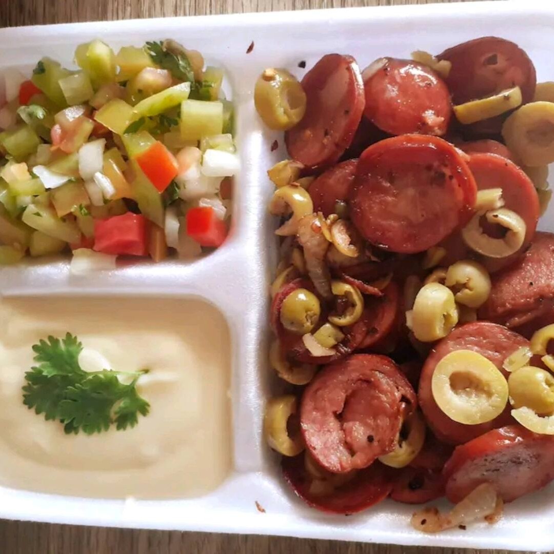 Calabresa Acebolada Apimentada Com Azeitonas + Acompanhamento