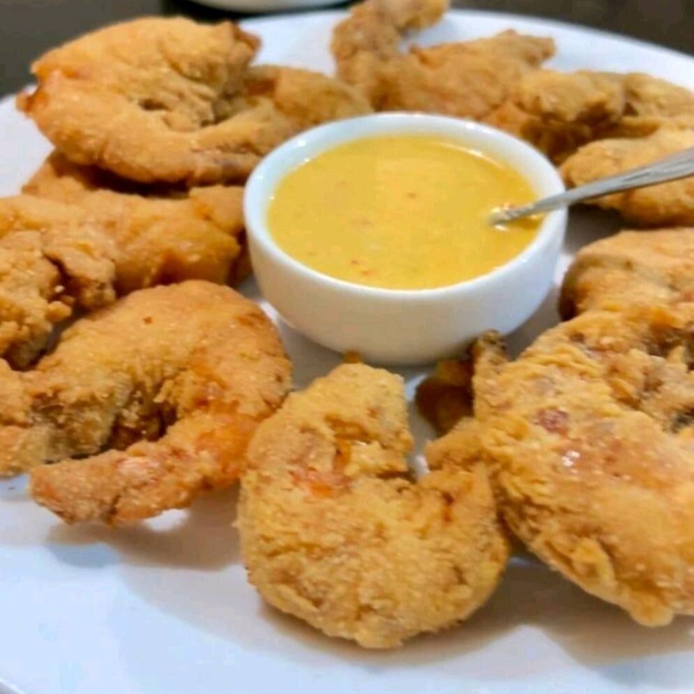 Camarão sem cabeça bem temperadinho empanado e fritos na hora. Trata-se de um petisco que serve de 1 a 2 pessoas ( Obs : Não é o filé )