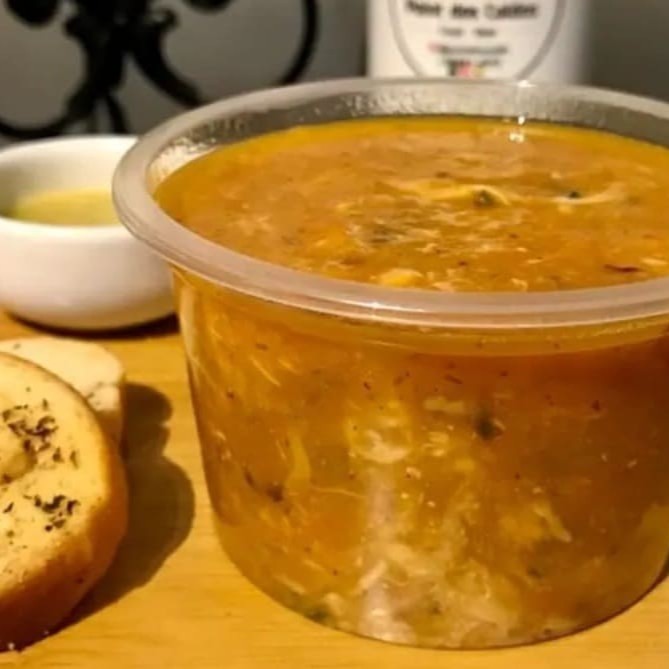 Sopa De Frango Desfiado Com Legumes De 1 Lt. + Torradinhas Grátis