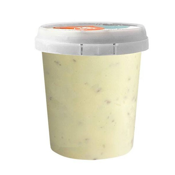 Sorvete de baunilha branca mesclado com chocolate meio amargo.