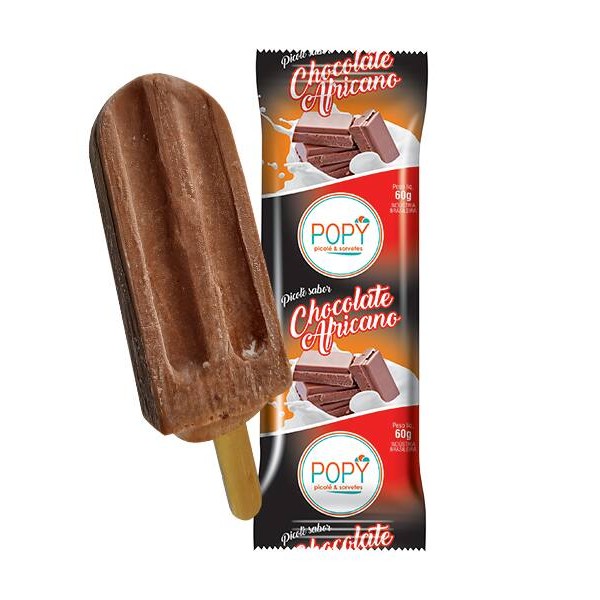 Picolé de chocolate com cobertura de chocolate meio amargo.