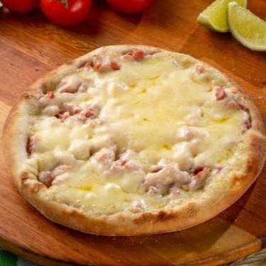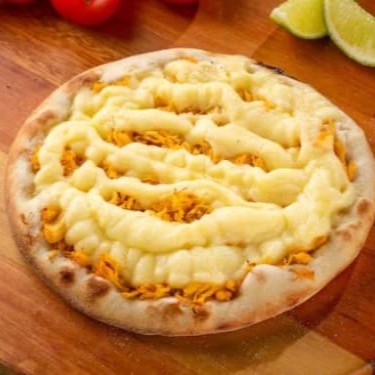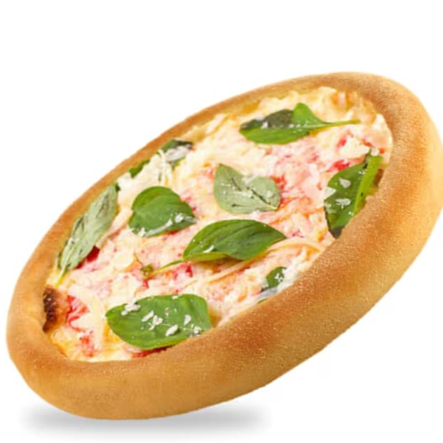 Recheado com mussarela, requeijão, folhas de manjericão rasgadas e rodelas de tomate fresco. Coberto com o mix de mussarela e cheddar e finalizado com azeite, garlic oil e parmesão. Aromático, leve e cheio de cor — uma opção refinada e deliciosa.