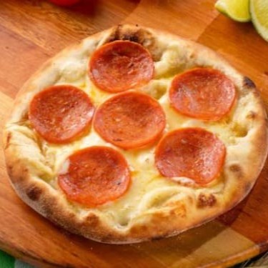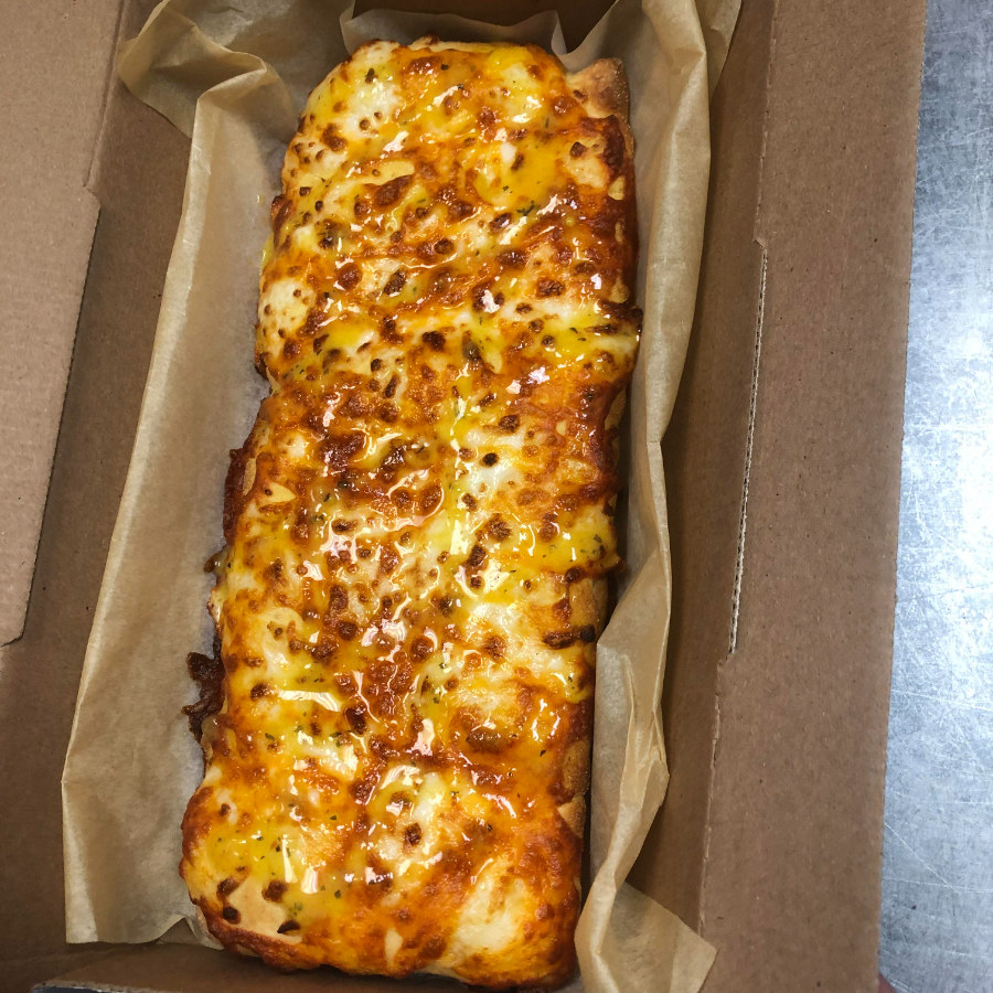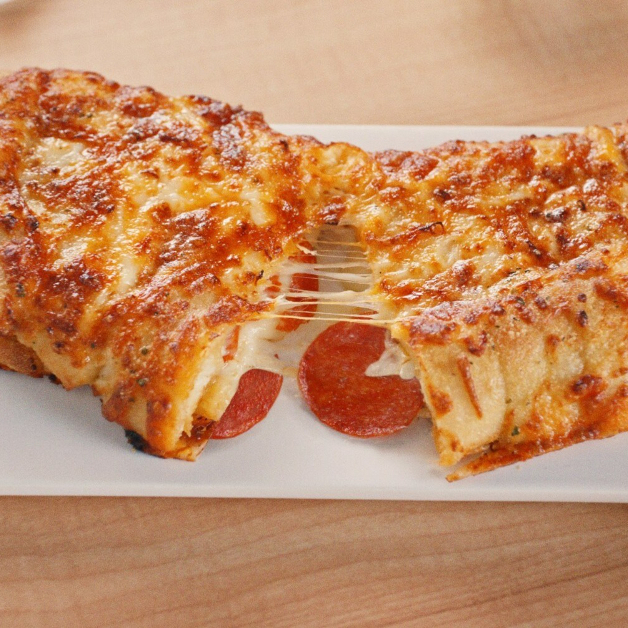 Versão brasileira do clássico. Recheado com mussarela e fatias de calabresa fininha, coberto com o mix de mussarela e cheddar e finalizado com garlic oil e parmesão. Crocante, cremoso e cheio de sabor — impossível comer um só.