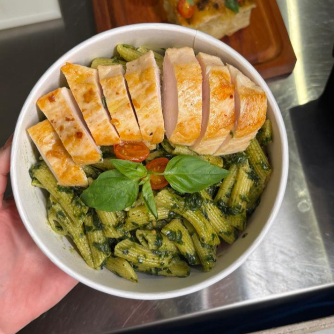 100g in natura. Não acompanha massa da foto, apenas proteína