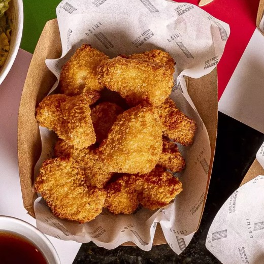 100g in natura. Não acompanha massa da foto, apenas proteína