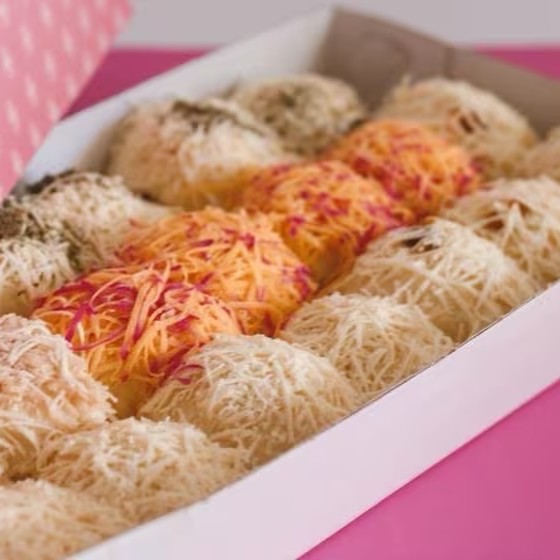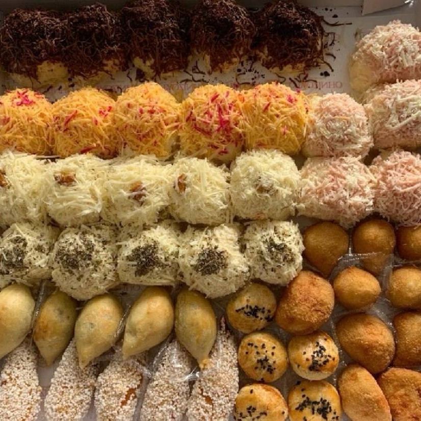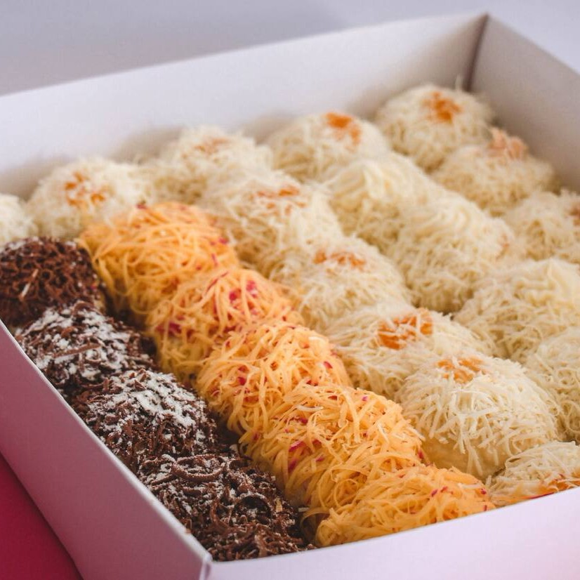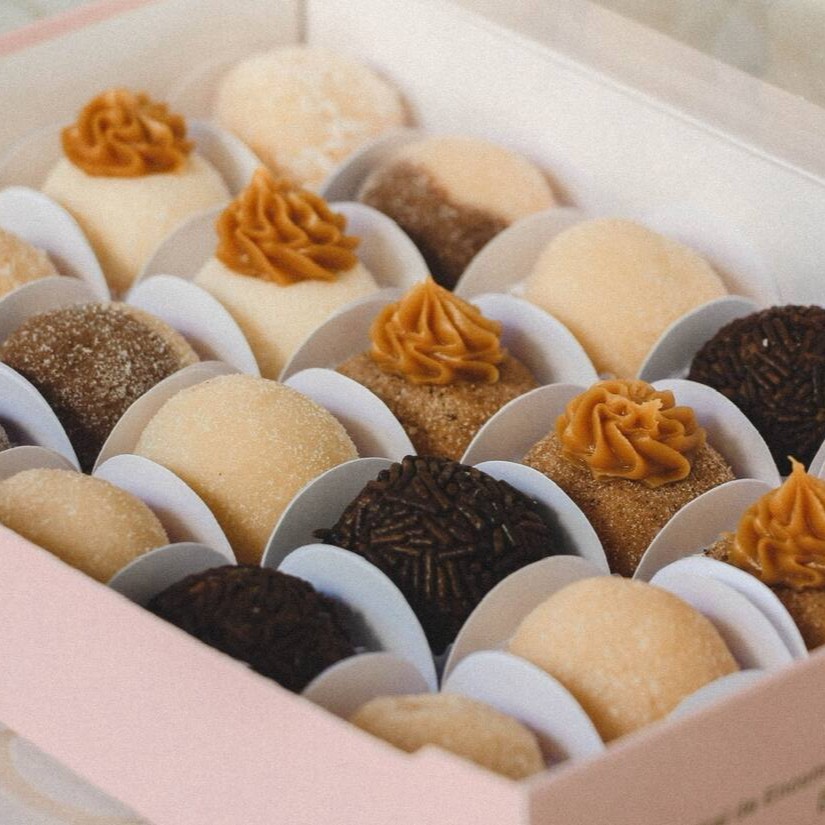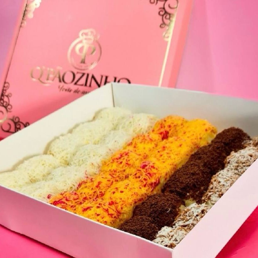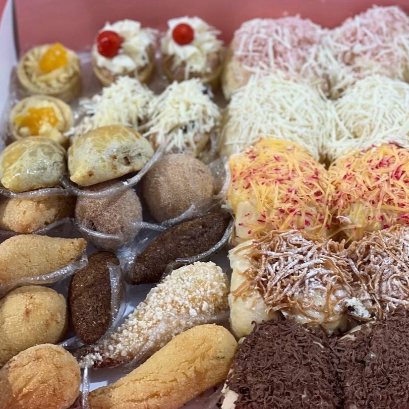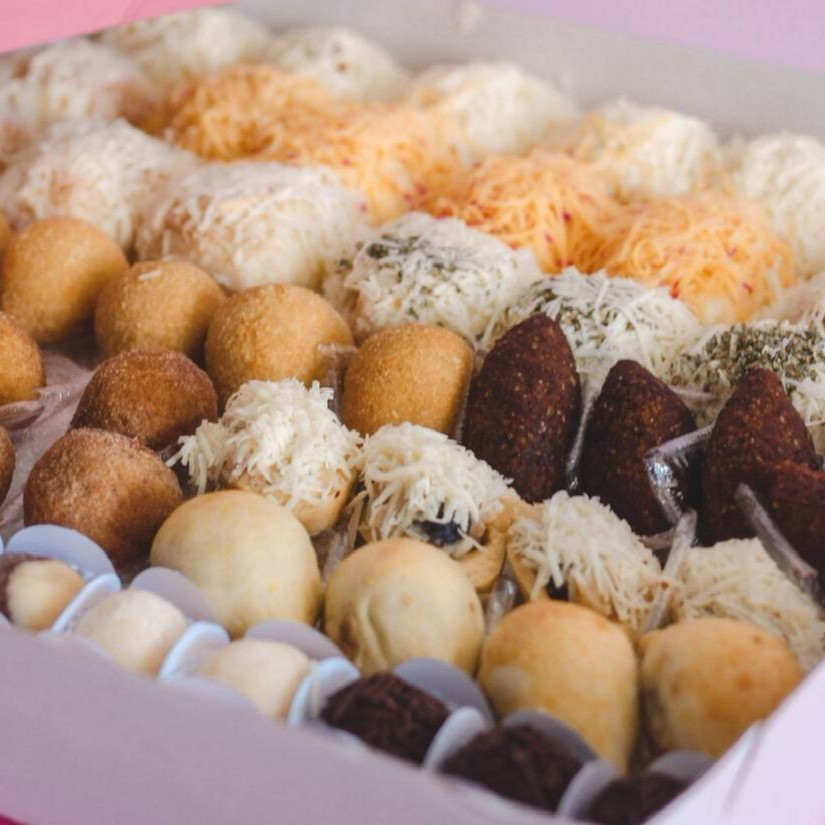 Caixa com 21 Pãezinhos variados + 26 Salgadinhos diversos e 22 Docinhos sortidos.