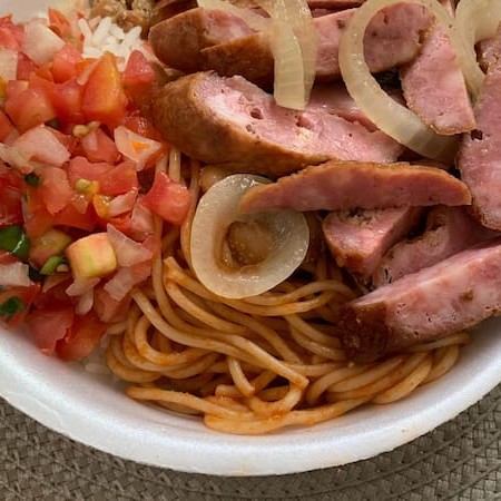 Linguiça toscana suculenta acebolada, servida com arroz soltinho, feijão caseiro e salada fresca. Um sabor irresistível que lembra comida feita em casa