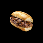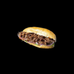 Pão francês ou de parmesão, 100gr de cupim desfiado, cebola puxada na manteiga e queijo mussarela.