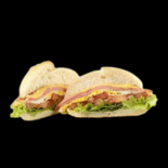 Pão francês, ovo, queijo, presunto alface e tomate.