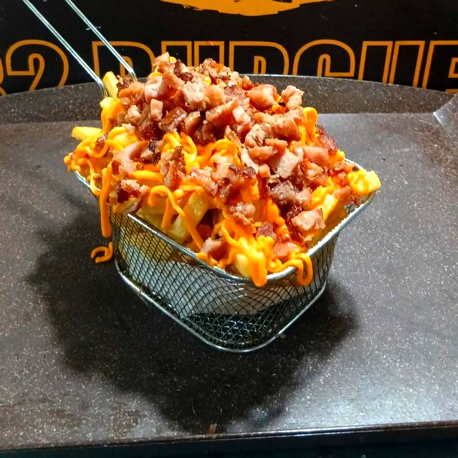 uma deliciosa porção batata crocante de 400g com bacon e cheddar