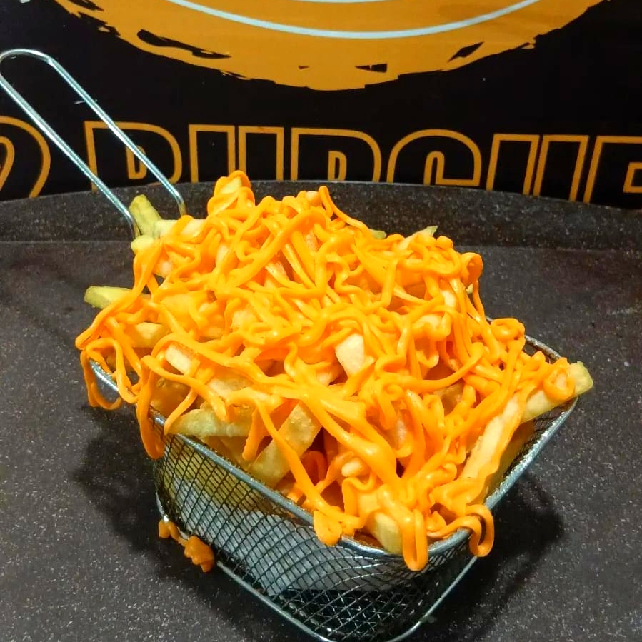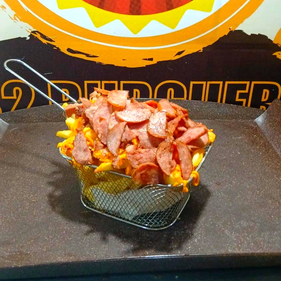 uma deliciosa porção de batata crocante de 400g com calabresa e cheddar